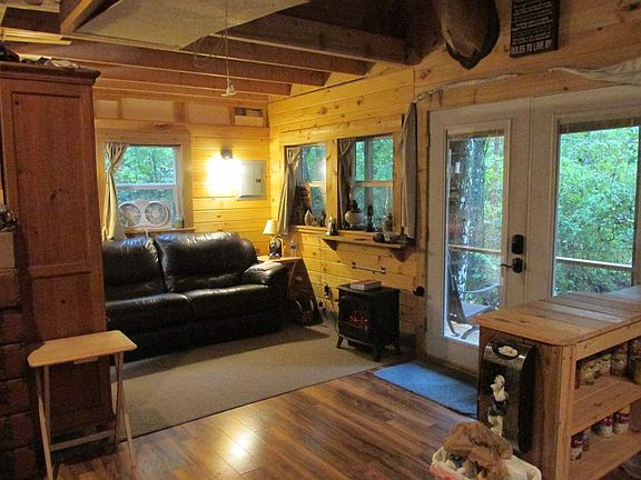 MENTONE: SECLUDED, WATERFRONT, DREAM CABIN ON 10 WOODED ACRES!!! A quaint bridge crosses the creek to allow access to the hidden gem of a cabin nestled deep into the woods. The front porch provides an especially unique experience as a rushing creek passes underneath you and a waterfall drops from beneath your feet. After a heavy rain the waterfall sounds like a gentle roar drowning out all other thoughts of the world you left behind. This 1 bedroom 1.5 bath cabin is like new! Large open area includes living, dining, kitchen, and office. Includes upstairs loft Bedroom and large laundry with half bath and room for storage. Plus 10x20 Workshop/Storage! PRICED TO SELL!
