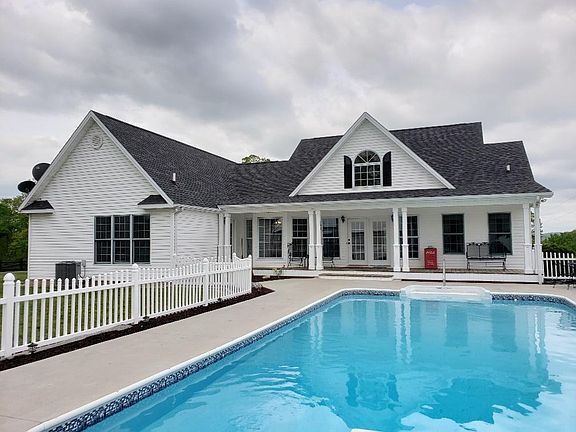 Gorgeous FARMHOUSE!!! This home is a one-of-a-kind with the WOW factor!!! Many recent updates throughout the home! 3BR/2BA with a large Master bedroom and completely remodeled master bath. The master bath has a phenomenal open tile shower. This home has a split floor plan with custom barn door added to the hallway to create privacy for second bedrooms and bath. Open concept living room and kitchen. The kitchen boasts beautiful granite counter tops, back splash, can lighting, and beautiful island overlooking the living room and heated 18' x 36' pool!!! The living room has gorgeous vaulted ceilings with wood beams and large windows for natural light! 360 degree scenic views of mountains, and neighboring pond. A storm cellar is under the pool house. The large 54 x 36 insulated, detached garage is heated and cooled with room for your boat and toys! Next to garage is an RV pad with water and electricity. Only 14 miles to marina & 4 miles town. MOVE IN READY!