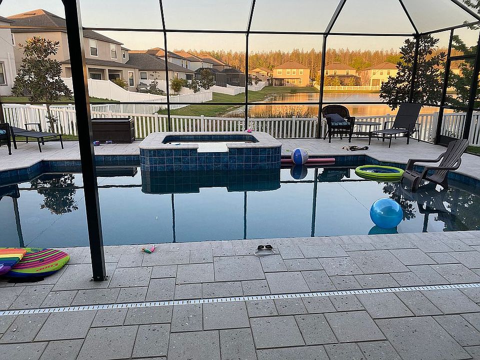With a serene POND VIEW, on a PREMIUM LOT w/ pavered driveway (extended) this IMMACULATE and NEARLY NEW Lennar "Monaco" model awaits its new owner. With almost 2,500 sf of masterly designed living space and many GREEN FEATURES, the home offers 3 spacious upstairs bedrooms, flex loft space, and a HUGE BONUS ROOM (or 4th bedroom). The first floor layout, boasting volume ceilings and accented by crown molding detail, fresh paint; is ideal for entertaining, with a formal living and dining area, a convenient powder room remodel and a huge family room with sliders to the oversize screened in pool with spa: The LARGE MASTER suite is filled with natural light overlooking the tranquil pond and the spacious bathroom is equipped with a garden tub, separate shower, water closet, large walk-in closet, and dual sink vanity. Upstairs carpet is brand new gray color. The GORGEOUS KITCHEN is adorned with GRANITE and ample gleaming 42" wood cabinets with molding; stainless ENERGY STAR APPLIANCES, including a flat top stove; center island and convenient pull-out drawers in all lower cabinets; a HUGE WALK-IN PANTRY; plus, a generous dinette space with slider access to the patio. Brand new plank vinyl flooring in dining room, dining room and large family room. Additional features include: upgraded ceiling fans w/ lighting throughout; laundry room, with washer/dryer included; 15 SEER high efficiency A/C; Low E Windows; programmable thermostat; water saving faucets & shower heads; Rain-Gauge irrigation system; Smith Voltex super-efficiency water heater; Schlange Nexia Home Automation system; plus, much more!