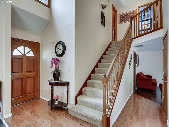 Traditional quality built home backs to very private backyard with view of creek & trees with large deck for entertaining. This home offers vaulted ceiling in living room, remodeled kitchen cabinets with granite counter tops, newer engineered hardwood floors throughout the main level, upper level baths updated with newer cabinets, counters & floors, master with skylight & double closet. close to parks, shopping, Intel and Nike.