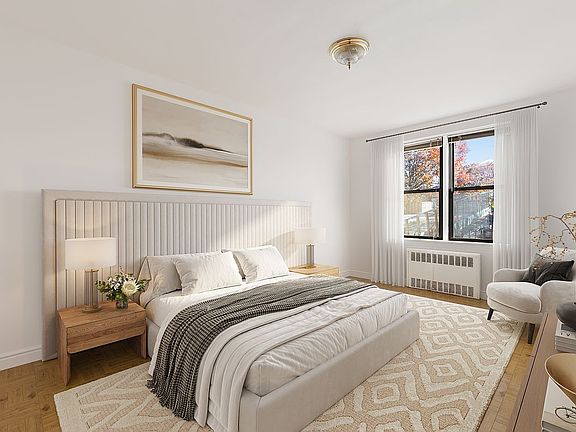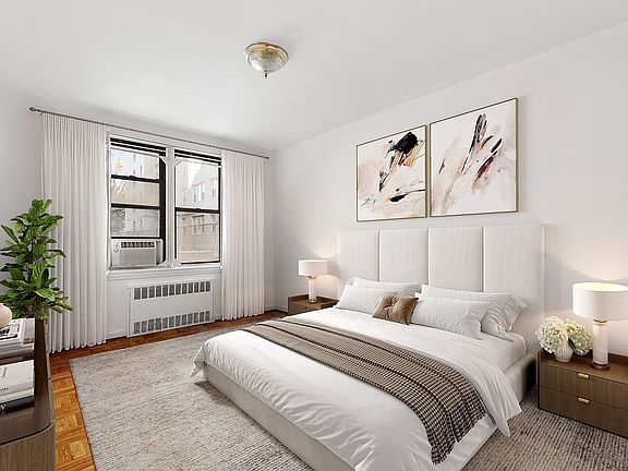 With an abundance of natural light streaming through the numerous windows, Residence 1B has a spacious living and dining room, complemented by a kitchen featuring new flooring and updated cabinets. All rooms are well proportioned with a wide entrance foyer, two generously sized bedrooms that easily accommodate king-size beds, and great closet space throughout.