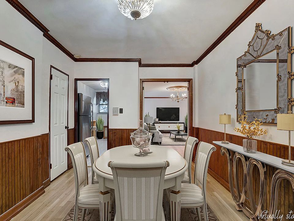 DAILY SHOWINGS BY APPOINTMENT. This apartment is truly a rare find in today's competitive market. As soon as you step inside, you'll be captivated by its remarkable spaciousness (approximately 1,300sq.ft) and abundance of closets (5 in total) As you enter, the hallway leads you to a charming dinette adorned with graceful crown moldings and wainscot paneling, a true masterpiece of elegance. It seamlessly flows into the grand living room, separated by charming French doors, creating an ideal space for both entertaining and relaxation. Adjacent to the living room, you'll find a separately standing dine-in kitchen with a window, equipped with stainless steel appliances and a convenient closet next to it. With two generously sized bedrooms that offer abundant natural light and ample space, your king bedroom set will fit perfectly. Plus, both bedrooms feature spacious closets for all your storage needs. The windowed bathroom is a masterpiece, showcasing exquisite Italian porcelain, upgraded lighting, and a convenient socket for a bidet Throughout the apartment hardwood floors add warmth and character. What's more, your monthly charges include hot/cold water, heat, property tax, building insurance, and maintenance. Super lives on site. Sublet is allowed from day one(board approval), video surveillance on each floor. Nestled in the heart of Midwood, this residence offers not just a home but a lifestyle. It's important to note that the building is currently undergoing renovations, which will further enhance the value of your investment. Don't let this hidden gem slip through your fingers. SHOWING DAILY BY APPOINTMENT