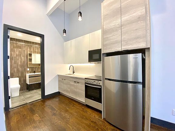 NO BROKER FEE! Available 6/1! Sunny Studio/ 1 Bath Apartment with the HIGHEST CEILINGS on the 1st floor of a NEWLY Renovated Building in Crown Heights, just a few blocks to the 2/3/4/5 at Kingston Ave! Apartment: High Ceilings for days!! - Gorgeous S/S Kitchen with room for a small dining table - Sunny, large Living space that fits a Queen bed, Wardrobe and living room! - Cooling/Heating units - Laundry in the basement - Pets allowed Neighborhood: a few clocks to the 2/3/4/5 on Kingston Ave! - Restaurants and cafes all around! 1st and Security NO BROKER FEE