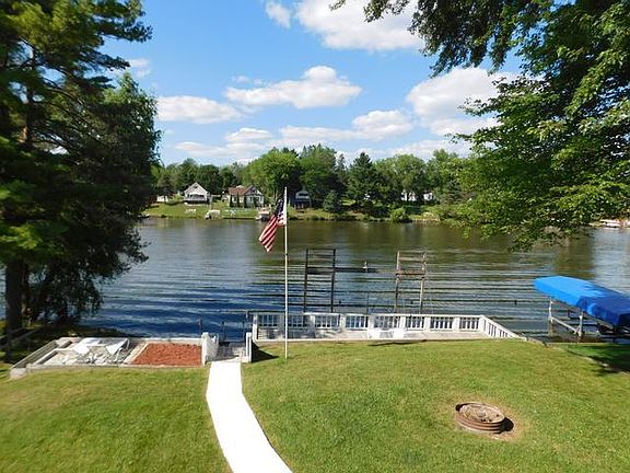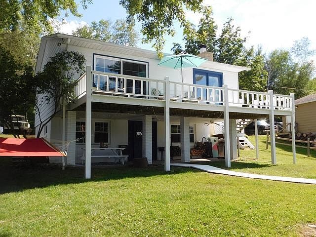 Renovated and Ready for New Owners! This Lake House gem will be where you will want to spend all your free time, but with cable internet you can work from from here if necessary. 62' on 2000 acre all sports Wixom Lake with steel seawall, suspended dock and good swimming with great views! The split level home offers a very spacious living room on the main level with slider to the spacious deck overlooking the lake. Three bedrooms and full bathroom on main level also. Master bedroom has a doorwall to the deck. Lower level offers a beautiful, well appointed kitchen with large island with seating and dining area near the brick, wood burning fireplace. Laundry & bath with shower complete the lower level. The lower level walks out to the covered patio and onto the level lot with firepit and walkway to the water. Attached garage too! The shabby chic lake decor will make you fall in love and it is included!!