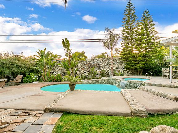 REMODELED SINGLE STORY POOL HOME IN SAN ANTONIO HEIGHTS. Situated at the end of a quiet cul-de-sac, this sprawling home offers professional landscaping, a long driveway & double door entry with tiled flooring that lead to an open floor plan. A Formal living room & adjacent formal dining room have wood shutters, tiled floors, vaulted ceiling & a chandelier. Family room also offers tiled floors, fireplace with a custom wood surround, vaulted ceilings & open to the kitchen. The kitchen features granite counter tops, full granite backsplash, updated appliances, recessed lighting, breakfast bar, breakfast nook & spacious pantry. Bonus room has a wet bar & slider to the backyard, currently used as theater room and also features a 3/4 bathroom. Master bedroom has a slider to backyard, vaulted ceiling & ceiling fan. Master bath offers tiled floors, dual sinks, custom shower with frameless shower enclosure & separate jetted tub with matching tile. There are three more spacious bedrooms and a remodeled guest bathroom. The private backyard features a swimming pool, spa, tropical landscaping, spacious decking area, covered patio with concrete decking, a dog run and a one of a kind stone back wall. Finished three car garage with overhead storage & checkerboard floor.