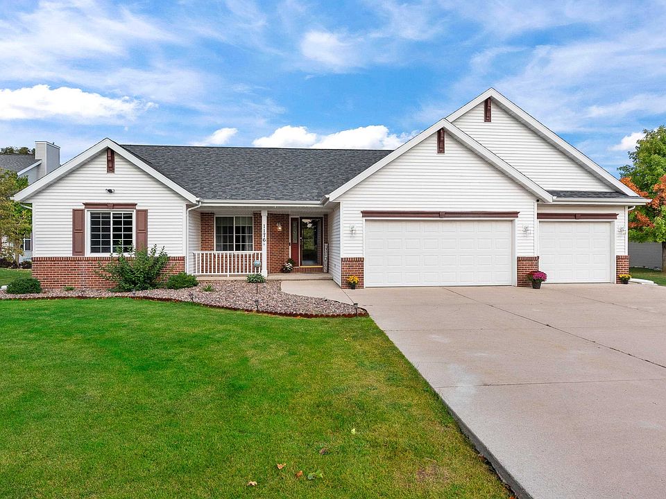 Open concept generous floorplan ranch on southern edge of city on near 1/2 acre setting features vaulted ceilings, custom brick fireplace and 6-panel doors. Offers welcoming foyer with built-in bench, center island breakfast bar pantry closet kitchen with corner sink, and large main floor laundry loaded with cabinetry. Grand size primary bedroom suite overlooking yard includes walk-in closet and private double vanity bath with seated shower + whirlpool tub. Wonderful multi-room finished lower level with 3rd full bath for expanded living space. Spacious rear deck off central dining area overlooks a sprawling backyard. Includes 2018 roof, 2025 water heater, radon mitigation system, brand new lower level carpeting, and all the appliances.