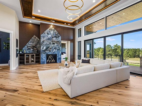 Reintroducing this new construction, never lived in beautiful home! The modern Vail Parade home offers refined living at its finest, combining sophistication, comfort, and style seamlessly, offering over 7300 square feet of pure luxury. It is designed with meticulous attention to detail and breathtaking panoramic views of Pikes Peak. You will be captivated by the grand room featuring expansive windows that allow natural light to flood the space. The gourmet kitchen is a chef's dream, equipped with double islands, custom cabinetry, ensuring a top-notch culinary experience. The spa bathroom is a sanctuary of relaxation and rejuvenation, boasting exquisite finishes. Privacy and tranquility are ensured as the property is situated on a quiet cul-de-sac. The 2.67-acre lot creating an idyllic setting for outdoor activities and embracing the beauty of nature. The garden-level basement of this home is designed to cater to entertainment enthusiasts. It features a custom theater room for indulging in entertainment. Additionally, there is a full basement kitchen and bar area, perfect for hosting memorable gatherings. The wine room/speak easy adds a touch of elegance to the overall entertainment experience. Every aspect of this home has been meticulously designed to create a harmonious blend of luxury and serenity. It is truly an exceptional property that provides an unparalleled living experience. This home is set up for entertaining or multigenerational living. 3 laundry rooms including a private laundry in the master! When you want your home to feel like a resort, this is the property for you to come home to.