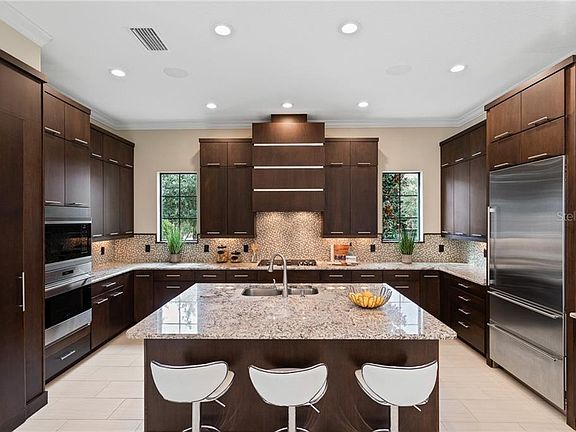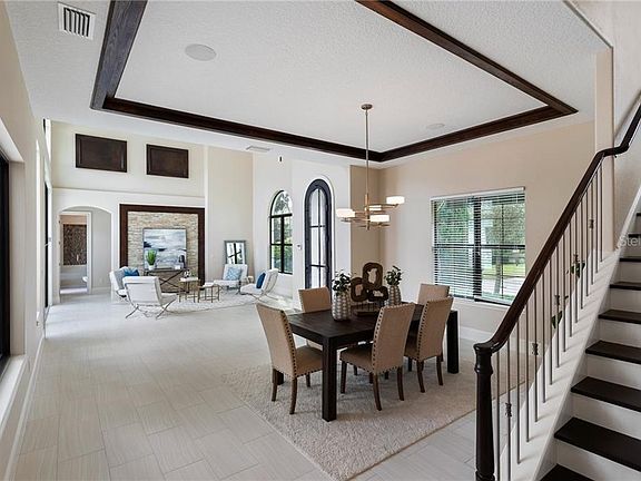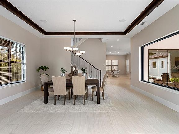"Casa de Paz" -- (The House of Peace) -- is an impressive example of authentic Spanish architecture built by Silliman Homes in the guard gated golf course and lake front community of Keene's Pointe in Windermere. Located in the newest neighborhood of the community, called The Gardens, this home was built in 2014 and offers a wonderful open floor plan, spacious gourmet kitchen, courtyard pool that gets sun nearly all day and an extremely large backyard with brick privacy wall along the rear perimeter. With contemporary features and clean lines, this home is bright and like new with freshly painted interior, attractive stacked stone accent walls, 10 foot sliders and transoms throughout which allow an abundance of natural light into the main living areas. In this Courtyard style floor plan the Master Retreat opens to the pool, while on the other side of the house you will find a downstairs guest suite/office/full bath, along with a combination Living Room-Dining Room with vaulted ceilings, the Family Room, breakfast nook and well appointed modern kitchen! Upstairs you will appreciate the 3 additional Bedrooms, 3 full baths and a bonus/flex room that opens to a large covered balcony overlooking the saltwater pool surrounded by travertine paver decking, summer kitchen and outdoor entertaining area. Over-sized 3 car garage, paver walkways and enormous driveway add to the appeal of this well designed custom home. Be prepared to be impressed! Home is Move in Ready!