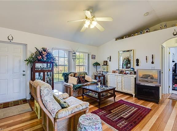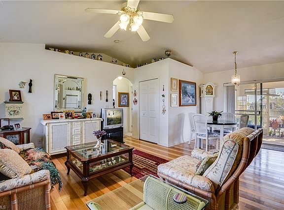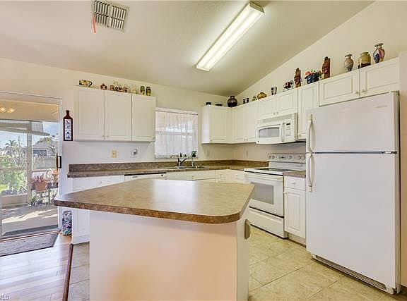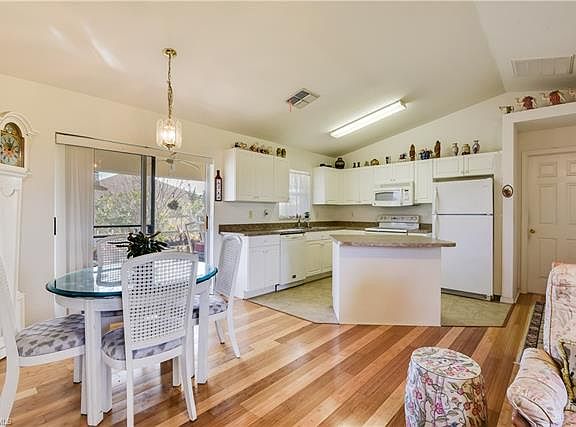 Great rental investment or seasonal/full time home! This great room designed home in a quiet NE Cape Coral neighborhood offers 3 bedrooms, 2 full baths & a 2-car garage with almost 1,200 sf of living space. The home has a classic split bedroom floor plan with the master owning its' own wing of the home, an open concept kitchen overlooking a great room & dining area, and sliding glass doors to a screened lanai. Gorgeous bamboo flooring can be found in the main living space along with cathedral ceilings and plant shelving that create an open feel to the home. The open concept kitchen offers an island with cabinetry and a breakfast bar, pantry, tile flooring, and lots of countertop space. A fenced-in spacious backyard offers plenty of room to add a pool if desired, and has two greenhouse areas. This yard is a gardener's dream and has lots of trees- fruit & non-fruit including mango and guava! Situated in a family-friendly neighborhood with easy access to Pine Island Rd and Veterans Pkwy.
