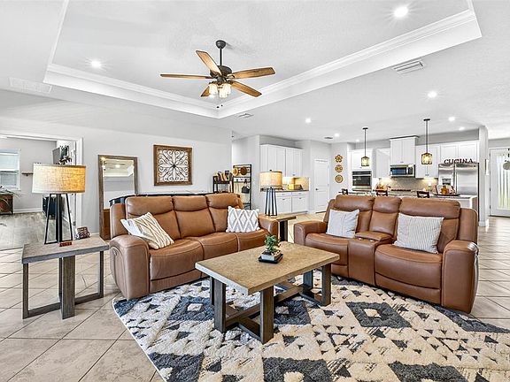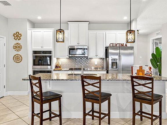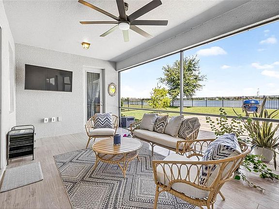 Welcome to this beautifully upgraded 5-bedroom, 3-bathroom home in the highly sought-after gated community of Lucaya Lake Club. With nearly $50,000 in upgrades, this residence blends thoughtful design, modern finishes, and versatile living spaces. From the curb, you’ll notice the professional landscaping, upgraded irrigation system, and wide paver driveway leading to the three-car garage. Step inside to find an open, light-filled layout with tile flooring in the main living areas and new hardwood flooring in all bedrooms and the bonus room. The heart of the home is the expansive living room with a tray ceiling, recessed lighting, and sliding glass doors that open to the lanai. The gourmet kitchen features granite countertops, stainless steel appliances including a new refrigerator, double wall ovens, herringbone backsplash, upgraded pendant lighting, and a large island with seating. A standout feature of this floorplan is its flexibility. In addition to the main living area, the home offers a second large living space that can be closed off to create a private in-law suite. This wing includes a wide-open bonus room, a spacious guest bedroom, and a full bathroom—ideal for multigenerational living, extended guests, or even a private retreat. The primary suite impresses with its size and spa-like ensuite bath featuring dual vanities, a makeup station, and a massive walk-in shower with decorative tile and a built-in bench. Additional bedrooms are generously sized, offering comfort and privacy for family and guests. At the front of the home, the fifth bedroom offers endless possibilities. With a custom Murphy bed built into the wall, this room is perfect for use as a home office, playroom, guest room, or anything else you desire. Its location and design make it one of the most versatile spaces in the home. Step outside to your private backyard oasis. The screened lanai, upgraded with tile flooring, opens to a custom paver patio with multiple seating areas, a fire pit, and a grilling station—perfect for entertaining or quiet evenings overlooking the lake. The backyard is enclosed with a black aluminum fence and professionally landscaped with mature palms and tropical plants, all with serene waterfront views of Lucaya Lake. For outdoor enthusiasts, this home is a dream—the lake is stocked with bass, tilapia, catfish, and bluegill, making it perfect for fishing right from your backyard. Additional upgrades include a whole-house water filtration and UV system, HVAC UV system, water softener with RO filter, and custom ceiling fans. Living in Lucaya Lake Club means enjoying resort-style amenities: a clubhouse, fitness center, zero-entry swimming pool, splash park, playgrounds, and access to the 78-acre lake for kayaking and paddleboarding. This is more than just a home—it’s a lifestyle of comfort, convenience, and community in one of Riverview’s most desirable neighborhoods.
