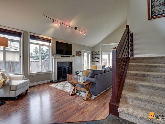 Meticulously cared for south Anchorage home backing to extensive greenbelt. Beautiful custom cabinetry, granite counters, SS appliances and tastefully upgraded subway tile back splash with new interior paint, 2018. View of Mtns. upstairs. New blinds downstairs w/blackouts up. Beautifully updated fireplace! CA closets in MB. Wine cellar in cool ''Harry Potter'' closet. HOA plows your driveway!!