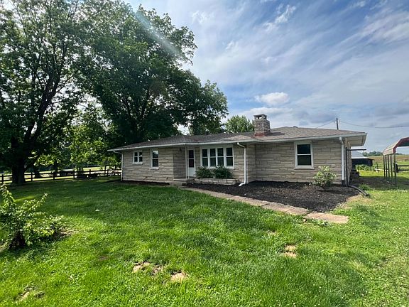 Has it always been your dream to own a peaceful lot with acreage in the county, but it often felt out of reach budget-wise? What about a horse barn as well? Then look no further! This 1352 sqft all one-level Bedford stone home does need some TLC as it has been a rental for several years, but it has an extremely peaceful country setting. Inside features 3 bedrooms and 1 full bath. The laundry room also features an additional shower with an exterior back door, for those work days you may not want to track mud into the house. The living room is overly large and could very easily be split into half the living room and half the dining room if the new buyer desires. It also features a stone fireplace with a large mantle for those chilly nights. The home features original hardwood and laminate flooring. The kitchen features neutral countertops and backsplash, a large number of cabinets and countertop space, a newer stovetop, range, and refrigerator. There’s also a nice sized eat-in kitchen area. The windows were replaced at some point. Two of the bedrooms are by the full bathroom and the third bedroom is situated off of the kitchen if privacy is needed. The home features a detached carport and an additional storage shed. The 3.33 acres included leave plenty of room for any activities and includes a fenced in area behind the house with a 30 x 36 barn where it could also be a potential income-producing property. If you're looking for a home you can fix up and make your own while having additional acreage- this is the home for you!