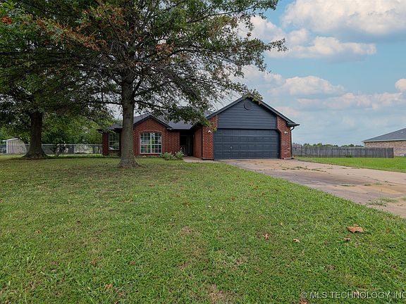 This move-in ready 3-bedroom, 2-bath brick home offers over an acre of space, a freshly renovated interior, and unique workshop potential just minutes off Hwy 20. Built in 1998, the home features vaulted ceilings, durable wood plank flooring, and an open living space full of natural light. The updated kitchen includes modern cabinets, sleek counters, and smart storage. The primary suite offers a large shower, dual vanity, and generous closet space. Outside, enjoy your morning coffee on the covered back porch overlooking a private and usable backyard. Two outbuildings give you extra flexibility: a 12x20 shed that’s ready for a workshop, studio, or “she shed,” plus an 8x10 storage shed. Recent updates include a freshly painted exterior, a brand-new aerobic septic system installed in Feb 2025 with a 2-year warranty, professionally cleaned air ducts. There’s no HOA and 100% USDA financing eligibility. Bonus: the seller is a builder and open to adding a custom shop ask about the shop package. Located in a quiet, established area just outside of owasso with fast access to schools, shopping, and dining. Come see the space, the upgrades, and the potential to build even more