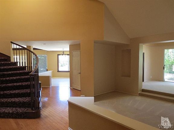 Magnificent Moorpark Gem; come home relax in this open inviting 4 bedroom 3 and 1/2 bath home, enter the house to a foyer that looks at the spectacular spiral staircase. Home has lovely step down living room with glassed fireplace, a stunning dinning room with domed ceiling. Large kitchen with gas cook top that over looks the very large private backyard, the family room has second fireplace and wet bar area. One of the four bedrooms is down stairs with full bath. Upstairs has three more bedrooms accentuated by the master retreat, stone and tile enhance the shower there is a soaking tub with relaxing views. The property has an in house laundry room the garage has ample storage. It's time to come home!
