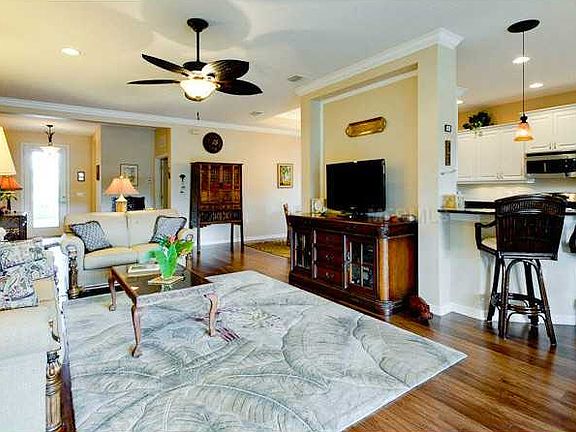 . Overlooking a tranquil pond & conservation area, this open plan home features 3 bedrooms plus den w/crown molding & custom bookcases. Upgraded 6" laminate wood flooring & 18" diagonal tile enhances the sense of comfort & luxury. A favorite gathering spot in this recently completed home is the gourmet kitchen w/granite counters, raised-panel "bump-and-stagger" cabinetry, recessed lighting, breakfast bar & stainless appliances. This lovingly-kept home also features a covered, paved split- level 500sq. ft. lanai w/custom sunscreen finished roof, planter area, waterfall features & a serene view - perfect for entertaining. The tropical landscaping adds to the overall beauty of this home. Energy-efficient windows & attic treatments w/R30 insulation keep costs down & the oversized 2-car garage has a finished floor. Come with complete hurricane shutters. This home is located near the state-of-the-art recreation center w/game room, fitness center, heated pool, jetted spa & outdoor kitchen. This community's amenities also include miles of nature trails, playground/parks, 2 dog parks, a basketball court & picnic shelters. An 18-acre lake with bird rookery, canoe & kayak livery, 2 gazebos, as well as areas where grand oaks have been preserved make this neighborhood a nature lover's haven. Conveniently located between Tampa & Sarasota & just 10 minutes from I-75, gorgeously landscaped Forest Creek is a gated community that offers a peaceful respite & a Florida lifestyle.