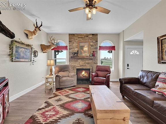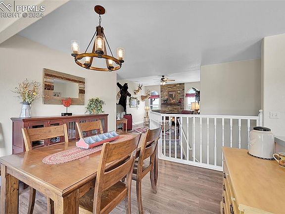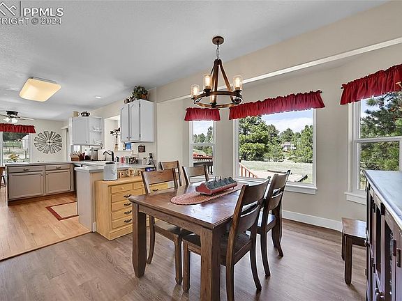This serene residence in the highly coveted Forest Ridge area of Elbert County is a true gem. Boasting 4 spacious bedrooms, 2 bathrooms, office, craft area and a fully finished basement spread across 2,878 square feet, it's the epitome of comfort. The home features a luxurious master bedroom with trayed ceiling, large walk-in closet, double vanity, newly remodeled walk-in shower and a picturesque bay window, offering serene views of the surrounding open fields. The family room is a cozy retreat with its impressive floor-to-ceiling rock fireplace, ideal for relaxing on cool Colorado evenings. The kitchen is thoughtfully designed to serve as the heart of the home, ideal for both everyday meals and formal entertaining. It features a versatile eat-in seating and a charming breakfast nook, complemented by a formal dining area perfect for hosting dinner parties. Equipped with double ovens and newer appliances, the kitchen offers modern functionality and style. This space is seamlessly integrated into the home’s layout, making it both a practical and inviting center of activity. Additional amenities include a two-car attached garage and ample additional parking space suitable for family gatherings or storing recreational vehicles. The property also includes a generous 20x23 barn and a paddock with animal shelter, perfect for equestrian enthusiasts. Cross-fencing that is spread across 3 lush acres enhances its rural charm and increases the overall functionality of the property. With ample living space and a functional outdoor area complete with a former playground and a spacious back deck, this property is tailor-made for both entertainment and tranquil living. Don’t miss out on this exquisite listing—book your showing today!