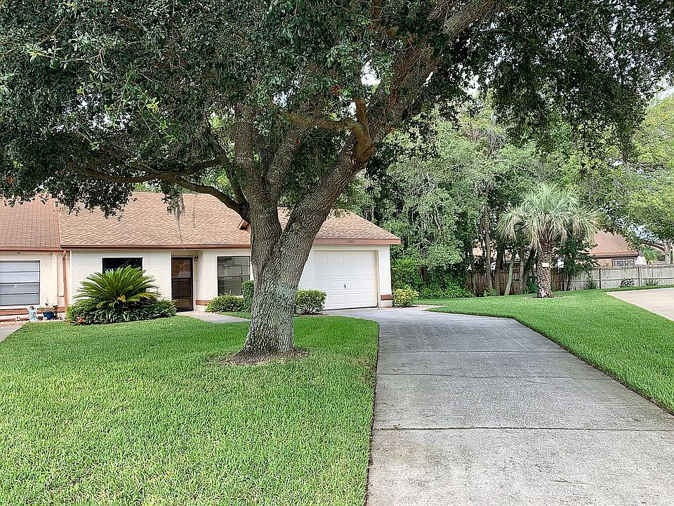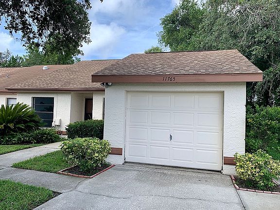 One story VILLA with an attached GARAGE a screened porch, and two solar tube SKYLIGHTS.. As you enter, to your right you have the kitchen and breakfast nook. The kitchen contains newer appliances To your left is a guest bedroom or office, or craft space. Next on your left is the guest bathroom, updated with a beautiful granite solid surface. In the hallway is a LARGE linen closet . As you continue, you will see a BREAKFAST BAR to the right as you enter the dining/ great room. Here the Great room features two SKYLIGHTS and the beautiful view out the slider to the back porch. To your left is the master suite, with security bars, and and updated master bath. All of this in a rarely available end unit. This is a quiet cul-de-sac with few neighbors. One of the lowest HOA fees in the area! Location is convenient to SR 52. Easy commute to Suncoast Parkway, medical, dining and shopping.