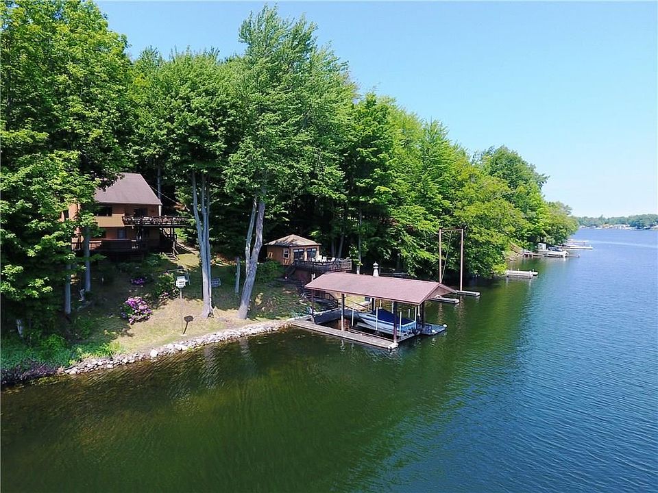 PARADISE FOUND! Hidden in the woods you will find this WONDERFUL Yr Round WATERFRONT Resort !! 4 BR Home w/GRAND VIEWS of the BAY from every room! Balcony overlooks the 2 Story Great Room! Flr to ceiling stone hearth w/ wood FP!! LG Waterfront Windows! Slider leads to multilevel BAYSIDE DECKS! Master Bedroom STE w/ bath & slider to balcony! LG KIT w/ Breakfast bar! Watch the sailboats from the spacious eating area! Walkout to the bay from the Finished Basement!! GUEST COTTAGE w/ bayside deck! 2+ CAR GARAGE w/ apartment above that features magnificent water views! OVER 1 ACRE of privacy w/ 160 lf of PRIME BAYFRONT! Deep Waters! 30+ Ft boat house w/ rail system! Covered Hoist will hold up to 34' Boat! 5 additional boat slips! This ONE OF A KIND opportunity only comes Once!