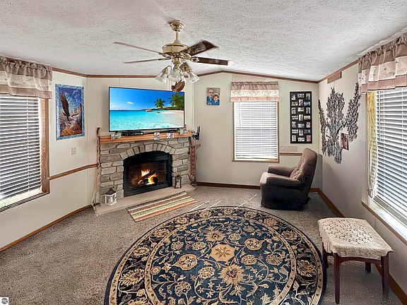Enjoy close to the lake life year-round in this well-maintained 2002 manufactured home located just across the street from stunning Houghton Lake, Michigan’s largest inland lake spanning approximately 22,000 acres. This 2-bedroom, 2-bath home offers cozy living with a gas fireplace in the living room, plus a large handy storage shed for all your gear. Step outside to relax on the deck or unwind in the shaded gazebo—perfect spots to savor the lake breeze. Whether you're seeking a full-time residence or a relaxing vacation getaway, this home offers the perfect blend of comfort and location.