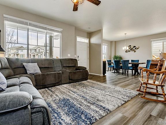 Immaculate nearly new home in this desirable location of Parker and it sits on the communities open space that has a park-like setting. This Patio Style home was built in 2020 and is located near the historical downtown of Parker and conveniently located near E470, DTC, Denver International Airport, and shopping/restaurants. Walking distance to many downtown Parker festivals. You will love walking into this gorgeous home with an open floor plan, large island, tall ceilings, gas range, slide out shelving and high luxury vinyl floors! Smart switch controls for a smart home system/app. Upstairs you will find all 4 bedrooms and two large bathrooms that each have two sinks in them! Large primary bedroom suite with a walk-in closet with room for a dressing area. 2nd floor Laundry room, The backyard features stamped concrete, garden area, and maintenance free turf. Ample storage in the garage. This community is maintenance free- no worrying about mowing or shoveling-just enjoy living in this beautiful home. Hurry, this won't last long!