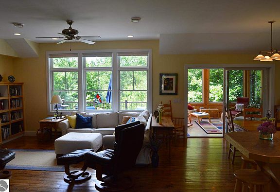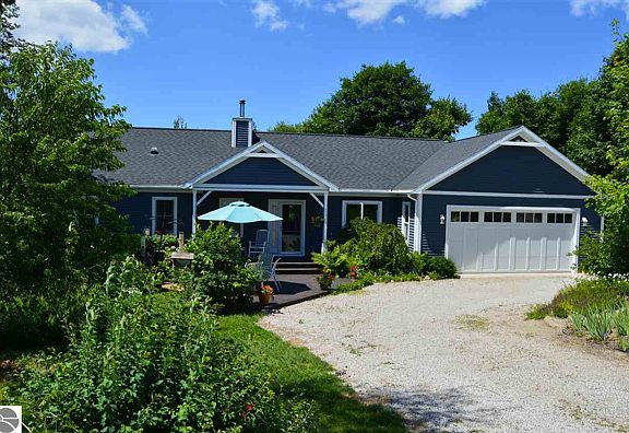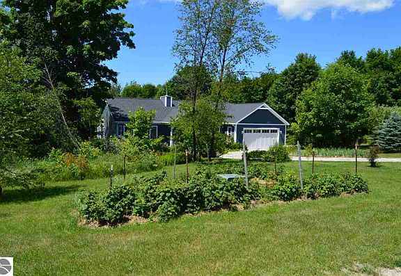 Lovely newer ranch with a complete walkout lower level which allows for great privacy. 10 acre wooded parcel set amongst a lovely (ORGANIC) cherry orchard allows you to enjoy all "Pure Leelanau" has to offer. Coastal villages of Omena and Northport are a short distance to enjoy a meal or boating throughout the Great Lakes. This home is light and airy with cathedral ceilings along with a 3 season screened and windowed enclosed porch which leads out to a large deck. The lower level boasts a family room, 2 bedrooms, a full bath and sewing room. Wonderful easily kept gardens and abundant outside sitting areas add to the enjoyment this property offers. Come make Northern Leelanau your home! Enjoy working on projects or storage of an additional 16'x16' lean too shed!