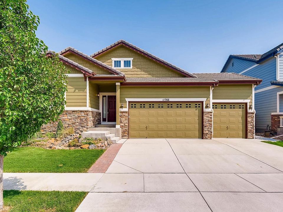 Attention to every detail. Beautiful upgraded ranch with finished basement. Main floor features wood floors and 9' ceilings. Great room with gas fireplace with stone from floor to ceiling is open to kitchen. The gourmet kitchen has slab granite counters, upgraded cabinets, stainless appliances including 5 burner gas cook top, double ovens, refrigerator, dishwasher and microwave. Master suite with 5 piece bath and walk-in closet. There is a formal dining room, study, 2nd bedroom, full bath and laundry complete with washer and dryer on main level. The basement features huge family room, 2 bedrooms and 3/4 bath plus huge storage room. 3 car attached heated garage and attached storage shed (9 x 9). Large paved stone patio in fenced back yard. Welcome home - Ready for you to occupy!
