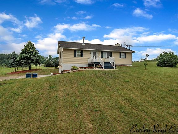 Welcome to this adorable country home on over 3 1/2 secluded acres in Lakeview Schools! Fall in love with this ranch right away as you drive up the driveway. Home has many updates including but not limited to new carpet, trim, doors and paint. Main level boasts an open living room with a cozy wood burning fireplace, the primary bedroom with bath, second bedroom and highly sought after main floor laundry. Kitchen is large with ample amount of counter and cabinets, a cute breakfast nook area, pantry and snack bar. Dining area has sliders that walk out to the deck to overlook the large backyard. In the lower level you'll find a 3rd bedroom, family room with walk out to the patio and tons of storage space. Previous owners drywalled over a very nice fireplace against the east wall that could easily be restored. Furnace is brand new with a warranty. Enjoy country without the harsh fill up of propane as monthly billing is an option! Pay for what you use, not by paying the big bill of filling the tank. You'll fall in love with the outside as the property has matured maple trees and an abundance of peach, apple and pear trees! Room for a pole barn if desired and also has an attached 2 stall garage. You don't want to miss this amazing opportunity!