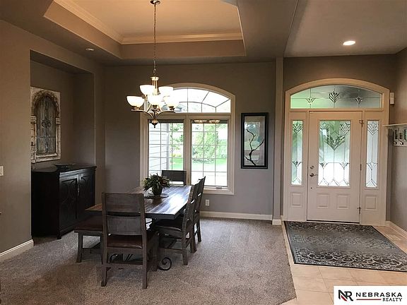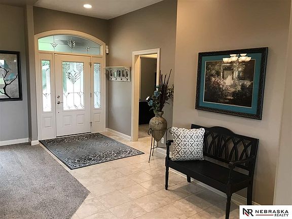 Stunning views! This wonderful home sits on the 2nd fairway of the Player Club at Deer Creek. The home offers 4 bedroom, 2 bathrooms, formal dining room and open great room. Kitchen floor plan with beautiful views to the west looking over the golf course. Fantastic kitchen with custom cabinets and granite counter tops. Pella windows with interior blinds, ceramic floors through kitchen, dinette, entry & laundry. Newer carpet throughout with updated wood floors in basement bar area. The basement rec room gives you a lot of room for entertaining with a walkout basement to a decorative stamped patio area. Large covered deck with stairs down and one of the best sunset views in Omaha. Deer Creek membership is negotiable for sale. The garage dimensions are 29x23.9.