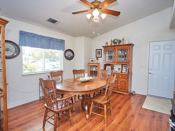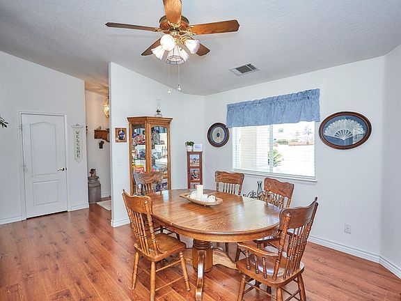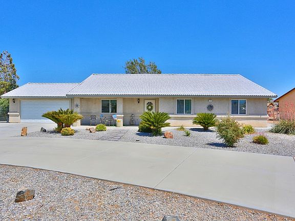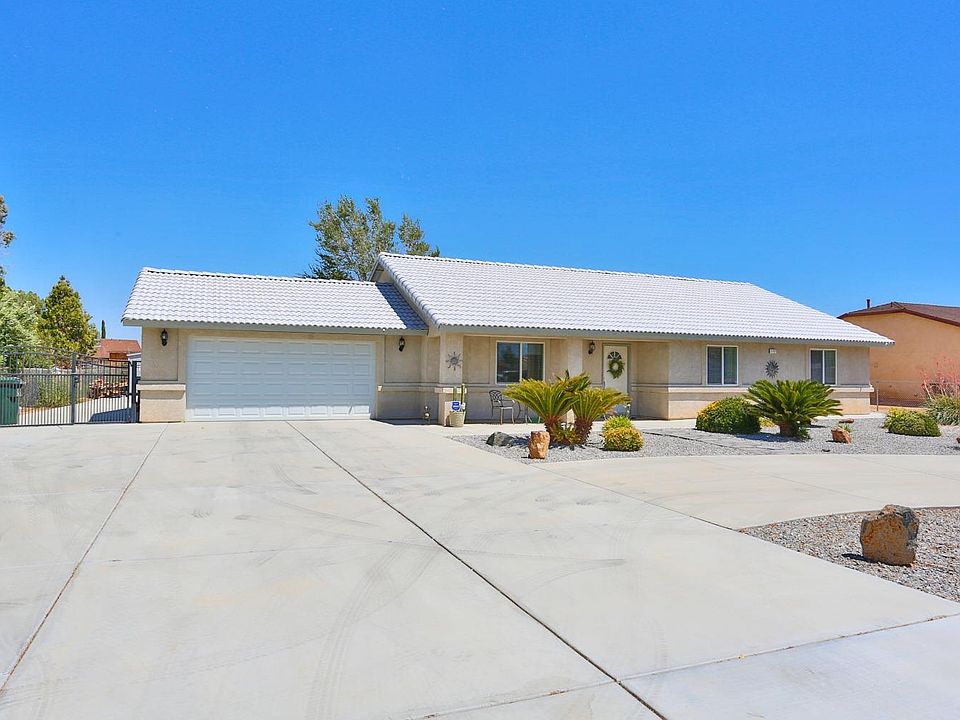 Near perfect single story Apple Valley home that is fully fenced including an electric front gate with remote opener, access from rear, and the front half-moon driveway. Beautiful front and rear landscaping, tile roof, attached 2 car garage and great mountain views from the backyard. As you enter you'll love the wood-style floors (new about 6 years ago), tall baseboard, tall vaulted ceilings that give you an open and free feeling, formal dining room, large open living room with fireplace, kitchen with large walk-in pantry, tile counters, tons of storage and clean white appliances. Great views of the backyard from the breakfast nook, large bedrooms with ceiling fans, pristine bathrooms with tile floors. You can tell when a house has been loved and taken care of and it's clear to see pride of ownership with this home. The large covered patio is great for BBQ's/evening beverages and has a fan to help keep you cool. Check out that huge 12x20 approx. shed in the back!..it would be great for a shop or additional storage. So many things like 50 amp for RV, wrought iron gate, the water heater is less than 2 months old and so on... Jump on this ONE before you miss out!