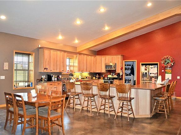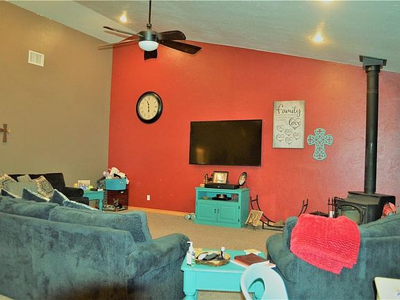 GREAT PROPERTY JUST OUTSIDE CITY LIMITS This beautiful Custom Home on a private 5 acres just on the edge of town the COUNTRY VIEWS will invite you to stay a while on the large front covered porch and enjoy! This magnificent 4 Bedroom 2 and 1/2 Bath home features sweeping 14 ' tall / Open Living, Dining and Kitchen. MAIN Bedroom has TWO LARGE WALK IN CLOSETS and a Spacious Bathroom. Down the hall you will find Bedrooms 2 and 3 also with large walk in Closets. The FOURTH Bedroom boasts of a 9' X 8' Closet !Water Softener, Extra Large Utility and SO MUCH STORAGE throughout this home including Large Walk In Pantry in Kitchen, Big Linen Closet in Bathroom and Cabinets galore make this a one of a kind gem! THE HUGE 1200 SQ FT garage adds additional space to home and provides access to floored attic as well as in ground storm shelter. Home is extra insulated for energy efficiency. LOTS OF LAND TO BUILD BARNS OR OUTBUILDINGS.VERY PRIVATE ! 3 PHASE CLOSE BY