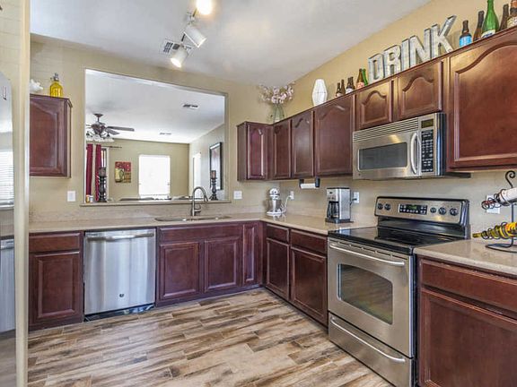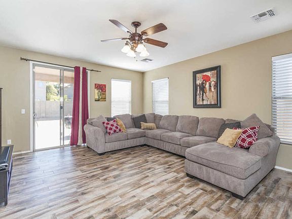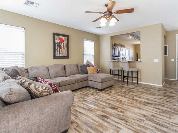 Great starter home with 3 bedrooms + den & 2 baths in 1701 SqFt! Great room floor plan with lots of recent improvements; including new wood-look tile, carpet, new blinds & recent interior & exterior paint! The eat-in kitchen has stainless appliances, granite countertops, pantry, & breakfast bar. Sliding doors lead out from the great room to the covered patio and extended patio providing room for your BBQ! The backyard offers room for kids & pets to play, and there's also community playgrounds, parks & walking paths nearby! The master bedroom has a private bath with tub/shower combo, extended vanity & walk-in closet. Other features include a 2 car garage with epoxy floors. See today!