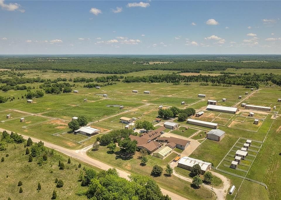 Highly improved horse facility. Features large home 4 bedroom 4 baths. Large and comfortable master suite. Big living room, great kitchen and additional den that is over 2000 sqft with a party kitchen. There is a mare barn with 7 stalls and lab or utility area, tack room, wash rack and feed storage. Also a stud barn that has 3 stalls 2 with large runs, also a lab or utility area. There are also 3 large shops,separate hay or shavings barn, covered RV and trailer parking with septic, 3 bedroom manufactured home, dog kennels, enclosed heated swimming pool, and 2 water wells. Property is completely fenced and cross fenced with Over 22 additional turnouts with over 30 shelters ranging in size from 12x12 to 12x36.