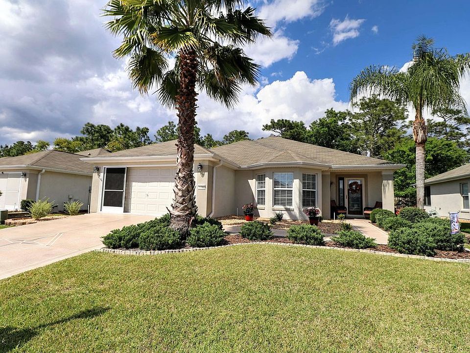 Great curb appeal. Professionally landscaped with partial Hacienda Wall. Designer drive and walkway. Storm door with glass leaded front door. Ceramic tile in heavy traffic areas with bedrooms being carpeted. Kitchen: Upgraded cherry cabinetry w/crown molding, breakfast bar, double door pantry and movable island. Enclosed lanai features laminate flooring, acrylic windows with shades and private back yard with paver patio. No houses behind. Extended 2-car garage (20' x 24'), attic storage and key-less entry. Move-in ready.