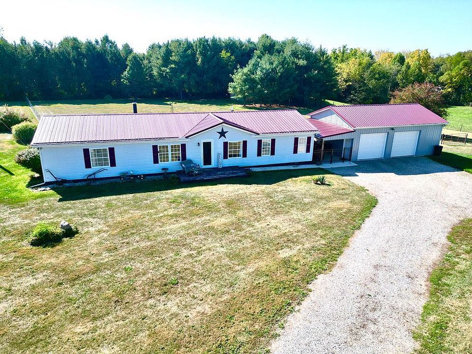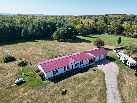 Escape to this country property where 5.039 acres awaits you. Located conveniently 20 mins. to Kenworth and Adena Hospital, it's also 15-45 mins. from Circleville, Chillicothe, Lancaster and Columbus. This property offers both serenity and accessibility. Inside you'll find a delightful 3-bedroom, 2-bath remodeled manufactured home where the heart of the home is the fully remodeled kitchen. Renovated in 2022 enjoy new cabinets, countertops, stainless appliances, new lighting, backsplash and flooring. The home features 2 spacious living rooms, new flooring, paint and lighting throughout, and 2 remodeled bathrooms. Another key feature, the 2.5 car garage, comes complete with heat and air, and its own electric panel. This versatile space can serve as a workshop or a haven for your vehicles. Outdoor amenities include a 16' x 20' barn, chicken coop, covered patio, deck and a fenced yard. In 2023, new HVAC systems were installed, in 2018 a new metal roof, and new wood-burning stove in 2021.