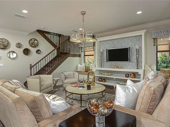 Furnished & Decorated MODEL HOME, with loads of upgrades, in the beautiful gated Marina Bay community. Stunning 2-story Charlotte floor plan with over 2700 SF in living space and a Pool with breath-taking views of the lake. First floor features one bedroom, one full bath, great room, upgraded kitchen with dining, formal dining, lanai with a pool deck, and a 2-car garage. Second floor features a large master suite with tray ceiling, two additional bedrooms & two baths, and a LOFT. Special features include tile & wood flooring in common areas and carpet in bedrooms. Marina Bay offers a galore of amenities with over 12,000 SF of clubhouse which includes resort-style pool, lap pool, fitness center, social room, party pavilion, tennis, volleyball, indoor basketball court, card room, party pavilion, water play area for kids and much more. Located off Treeline Ave close to Daniels Pkwy and is minutes away from the Airport, Hospital, I-75, Shopping, Dining, Theatres, Schools and Florida Gulf Coast University.