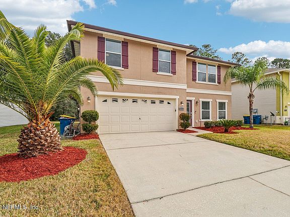 With no CDD fees, very low HOA fees, a newer roof and AC, and an expansive backyard overlooking a protected preserve, this home offers comfort, value, and privacy with minimal costs. This beautiful home is perfectly situated in a convenient location within the heart of Jacksonville, just minutes from I-295, restaurants, shopping, fitness centers, and medical facilities. The exterior showcases lush, well-manicured landscaping and a 2-car garage. Inside, you'll find tile and laminate flooring throughout, complimented with an open floor plan and first-floor powder room. The well-appointed kitchen features an island with seating, solid surface countertops, and abundant cabinetry storage. Natural light pours in through the kitchen windows and the sliding glass doors in the adjacent dining area, creating a warm and inviting atmosphere. Upstairs, all spacious bedrooms are thoughtfully designed with large closets, including the primary suite, which features elegant tray ceilings, a dual vanity, a private water room, and a luxurious bath with a separate garden tub and shower. A convenient upstairs laundry room completes the layout. The large backyard and patio provide a serene retreat, enhanced by views of the preserve and a storage shed for extra space. This is a must-see property!