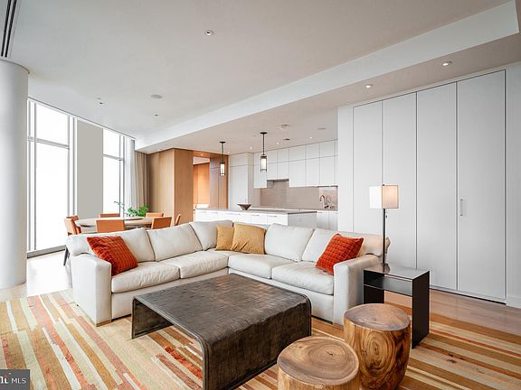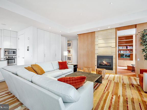 This singular contemporary duplex penthouse, custom designed by Thomas Pheasant, showcases bespoke finishes and a private wrap-around roof terrace with views of the National Cathedral and Georgetown. The generous living areas offer handsome white oak paneling, a gas fireplace, balcony and an informal dining area as well as 2/3 bedrooms and 3 full baths. The primary suite is spacious, with a generous walk-in closet, while its bath offers double sinks, soaking tub and a separate shower. The attractive and highly functional open concept kitchen features a large island, top-of-the-line appliances and a walk-in pantry/laundry room. 22West is a full service condominium residence located in the vibrant West End, convenient to downtown, the White House, Metro and fine restaurants. Amenities include 24-hour concierge services, a roof-top pool, grilling station, fitness center, two-car garage parking and additional storage.