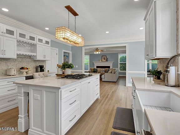 Old world craftsmanship and extensive renovations in 22/23 offers the best of both worlds; enduring quality and the modern luxuries you expect in a Landfall home. The hard work has been done for you with; stunning solid white oak flooring, newly remodeled kitchen, master bath, upgraded hall and guest suite baths, new tankless water heater, 3 new Trane HVAC units, new balcony roof with custom decking, new architectural roof, new designer paint and stain master carpeting, a huge level backyard with new Empire sod backing up to Lake Landfall nature preserve, the rare, coveted 3 car garage and even more! This huge, level yard with new premium sod in 2022 backs up to the nature reserve leading to lake Landfall one street behind you. This large lot has ample room for a pool, outdoor kitchen and the outdoor space of your dreams. Wake up in the quite morning, sitting on your master bedroom balcony and hear the serene waves of the intracoastal waterway just 2 streets behind you. The entrance to Lake Landfall is just several houses down for instant ease to do your workout or walk your dog on the one mile lake pathway bordering the intracoastal waterway. Your kitchen has a new Thermador suite of appliances, coastal white flat panel cabinets with built in organization, quartz countertops, Bocci Fireclay farmhouse sink and premium kohler fixtures and a massive center island. Your newly remodeled master bath boasts marble tile, quartz counters, an enormous spa size soaking tub with solid quartz deck, spa shower and spacious vanity counter with seating. Upon entering stunning new, solid white oak flooring is expansive and open. A true executive size office with French doors provides space and privacy. The foyer leads to a open plan kitchen and living room adjacent to a sunroom/ playroom. The formal dining space off the garage entrance hallway may also be a flex entry zone/organization space. An in-law suite with separate living room and bedroom is over the garage that can be used for aging parents or another living/ play area. 2 more tiled full baths, upstairs laundry and three bedrooms round out the second floor. The master has a stunning second story balcony facing east to benefit natural morning light from sunrise over the intracoastal. The third floor is a true expansive guest suite allowing you to be ever ready for company. The enormous three car garage means you never have to worry about where you will store your boat! When the sun and surf calls you will be instantly ready! This is a rare opportunity to own this quality constructed Landfall home, newly and extensively remodeled, with a huge level backyard, three car garage and in law suite for future thoughts of generational living.