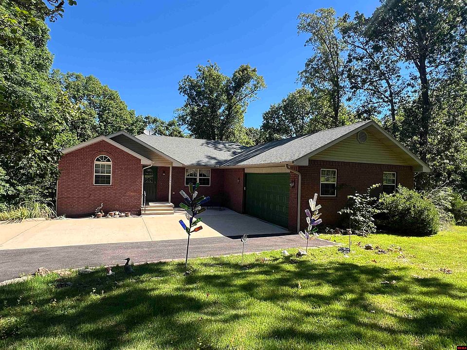 Inviting all brick 3 bedroom/3 bath home with 2 car garage with separate 24x30 shop building. Home situated on a beautiful park-like setting with 8 acres m/l.  Home features a walk-out basement with a bedroom, full bathroom, kitchenette, and family room for guests. Main level has a split bedroom plan with 2 full baths, one of which has a walk-in tub. A chair lift for the stairs makes going down or coming up from the basement a breeze. Home is equipped with a whole house GE generator in case of power outages. Enjoy the peacefulness of the outdoors in a nice screened in deck just off the dining area.