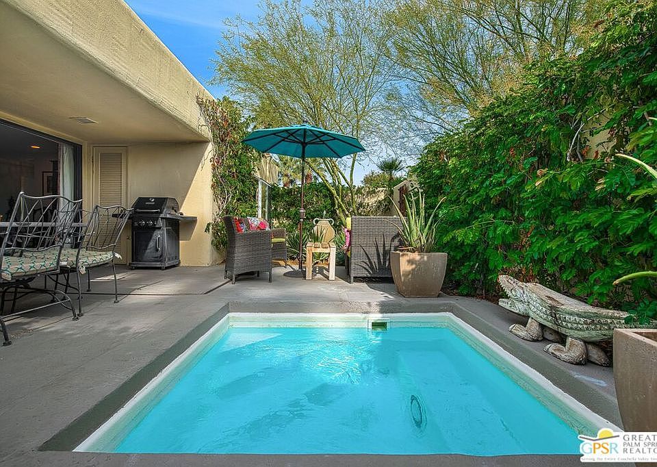Welcome to your oasis in the heart of Palm Springs! Nestled within the Greenhouse community. This 2-bedroom, 2-bathroom condo offers resort-style living. Upon entering, you are greeted by an inviting living area adorned with abundant natural light, accentuating the chic interior. The well-appointed kitchen, featuring contemporary appliances and sleek cabinetry, opens seamlessly to the dining area, creating a perfect space for entertaining guests or enjoying intimate meals. Step through the sliding glass doors onto your expansive patio, a private retreat that beckons relaxation. The highlight of this outdoor sanctuary is the plunge pool, an ideal spot for cooling off under the warm Palm Springs sun. Whether you're lounging with a book or entertaining friends, this patio offers a tranquil escape. The Greenhouse community itself is a haven for recreation, with two pools inviting you to take a refreshing dip or bask in the sun. Indulge in relaxation at the spa or enjoy friendly competition on the tennis court, expertly set up for pickleball enthusiasts. Convenience is key, and this condo's proximity to downtown Palm Springs ensures that the city's vibrant energy is just moments away. Explore an array of dining options, from gourmet restaurants to cozy coffee shops, and satisfy your shopping cravings with boutiques and stores nearby. Whether you're seeking a full-time residence or a vacation retreat, this 2-bedroom, 2-bathroom condo at the Greenhouse in Palm Springs offers an unparalleled combination of style, comfort, and convenience. Embrace the desert lifestyle and make this exceptional property your own!