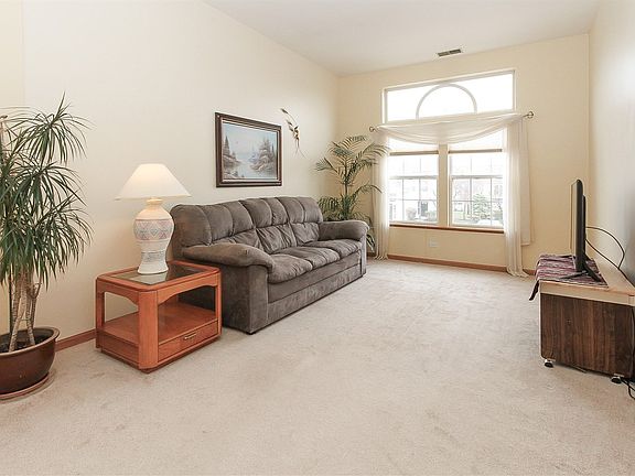 Meticulously maintained 2 bedroom, 2 bath penthouse end unit with open concept and soaring ceilings and over 1600 square feet Amazing kitchen with white cabinets, gorgeous quartz counters, huge pantry, hardwood floors, center island and eating area. Light and bright Family Room/Den with skylights and sliding doors to balcony. Spacious master suite with vaulted ceilings, walk-in closet and large bath with double sinks and shower with built-in seat. Add to this a prime interior location surrounded by flowering trees. Close to expressways and shopping yet tucked away with walking paths and a pond. Award winning schools including Conant High School make this one a must see!!