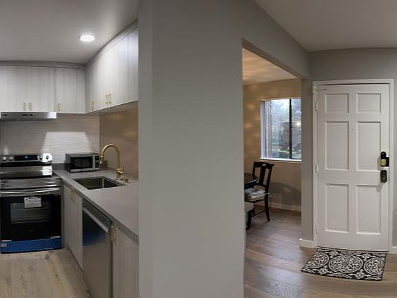 This is a furnished 1 BR condo (708 SF) that has been fully renovated. You will be first resident to live in this remodeled condo. Kitchen and bathroom were completely renovated. New engineered wood floor is throughout (new tile in bathroom). Baseboards and even door knobs are also new. All ceilings, and walls are freshly painted. Stainless appliances are brand new as well. Location: right off BART station at Pleasant Hill / Contra Costa Center and 1 block away from John Muir Health Foundation; a couple of blocks away from AAA and UBS office, 15 minute walk to Sprouts Farmers Market. The unit comes with a dedicated covered parking spot. Lease is ideally 12 months but open to month-to-month. Perfect for traveling nurses. No pets (sorry, all flooring is brand new). No smoking of any kind (sorry, this unit went a comprehensive remodeling, I can't risk). Background check is required. The owner is a caring individual, not a company. Please reach out for details. Lease is ideally 12 months but open to month-to-month. Perfect for traveling nurses. No pets (sorry, all flooring is brand new). No smoking of any kind (sorry, this unit went a comprehensive remodeling, I can't risk). Background check is required.