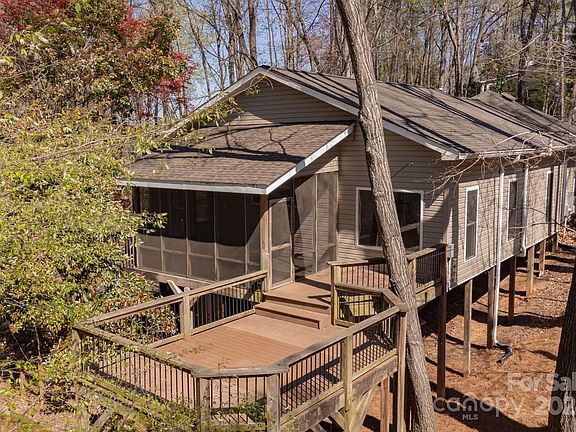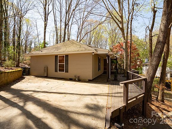 Welcome to your oasis! As you step inside, you'll be greeted by an abundance of natural light streaming in through the ample windows, creating a warm and inviting atmosphere. The open-concept living area features beautiful built-ins and a window seat with additional storage. Two primary suites offer the ultimate comfort and privacy, each complete with ensuite bathroom and ample closet space. The outdoor living spaces are truly one-of-a-kind, with multiple decks, patios, and a screened-in porch providing peaceful privacy. This tree house-esque home offers a unique opportunity to live among the trees while enjoying all the modern comforts. Located just MINUTES from the lake... don't miss your chance to own this peaceful retreat in the woods!