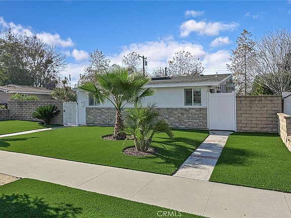 Welcome to a warm and charming, remodeled home, nestled on a desirable, lush green, tree-lined street in the heart of Anaheim! Minutes from Knotts Berry Farm and Soak City. The inviting private entrance provides a perfect, calming spot to relax and take in the peaceful surroundings of the picturesque yard. Located on a large lot, this home is freshly painted and offers an ideal blend of comfort and character appeal. Boasting 3 bedrooms with an extra 4th bedroom/office room that is attached to the master, and two large remodeled bathrooms. It has radiant laminate wood floors throughout, dual pane windows and recessed lighting. A spacious remodeled kitchen with granite counter tops, stainless steel appliances and lots of self closing cabinets offering plenty of storage. Central AC and Heating. There are plenty of windows in the living room and bedrooms that open up to a sprawling lush green side and backyard, making the home bright and airy, great for relaxing or entertaining. A detached two car garage in the back with a 220v outlet for EV charging. There is also a storage shed or could be a third garage (unpermitted). Easy access to the 5 and 91 freeways. Centrally located near all major shopping, restaurants, freeways, and much more! Hurry, Make this one yours!!