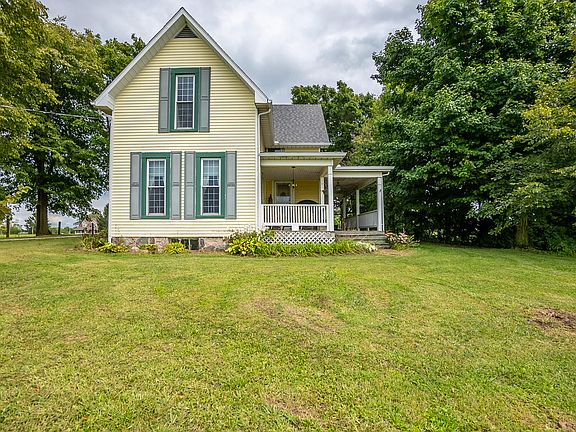 Enjoy this beautiful country property loaded with historical charm on two lovely acres. Original 1900's hardwood flooring along with gorgeous woodwork. 4 bedrooms with large master on main floor. 3 more bedrooms upstairs. 2 full updated bathrooms one just recently remodeled. Kitchen has a wood burning stove. Oversized laundry area . Updates include..2021 new owned water softener, most newer windows, 2010 geo thermal was installed, 2012 new roof on front of home, upgraded 220v service to the home, 2019 new well pump, 2021 created office/craft room. Lots of room to spread out. Partial basement. Large 2 car garage. Freshly painted partial wrap around porch. Back yard has a sitting area with firepit that is nicely shades by mature tree. Home sits on 2 acres to enjoy. Shed and chicken coop area. This beautiful country property is waiting for you !