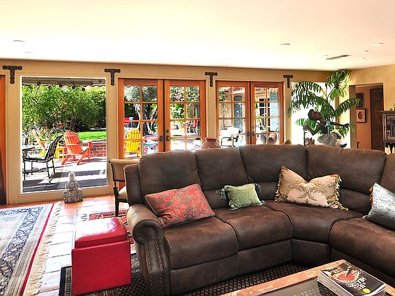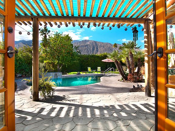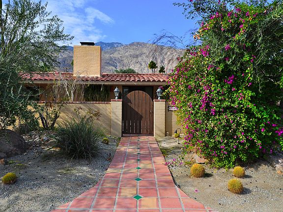 Built in 1948 by Paul Trousdale, this warm and inviting Spanish-influenced California ranch home embraces views of the mountains and a sprawling, multifaceted outdoor setting. With 4 bedrooms including a casita, this residence features beautiful period tiled showers, countertops and sinks. Saltillo tile floors display exquisite sunbursts. Two fireplaces; one in the living room the other in the huge formal dining room. Entertain outdoors with a state of the art DCS 48'' barbecue with four professional burners and fridge while warming yourself with the outdoor fire pit. Take a dip in the Pebble tech salt water pool and spa. Beautifully landscaped with cactus, succulents, gorgeous rose gardens, patios and a rolling emerald lawn. Tangerine tree supplies up to five months of delectable morning juice and sits alongside three bearing olive trees and six towering palms. Library and two room casita offer getaway areas as well as rental possibilities. Can make for a fabulous vacation rental or full time residence.