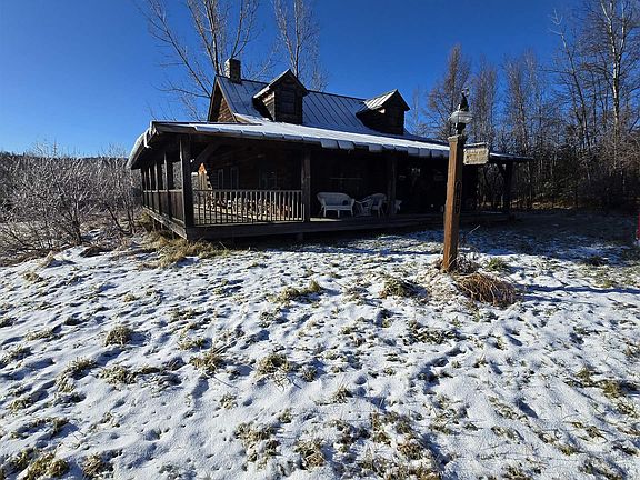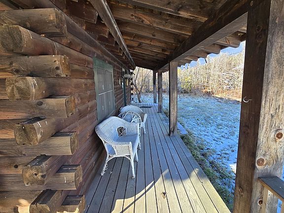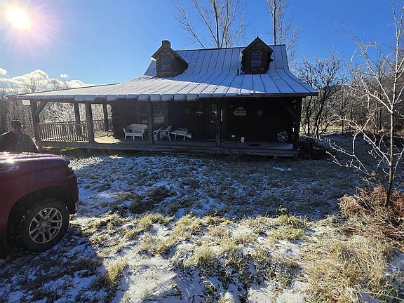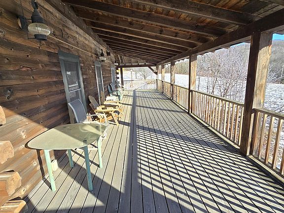 Country living at its best with this 2-bedroom Log Home. Living room with stone fireplace, cathedral ceiling. Kitchen dining full bath and 1 bedroom on the first floor. 2nd bedroom with 1/2 bath and balcony overlooking living room. Full walkout basement with bath. Sit out on the large wrap around porch and enjoy the views. 2 car garage. Open and wooded land with a stream.