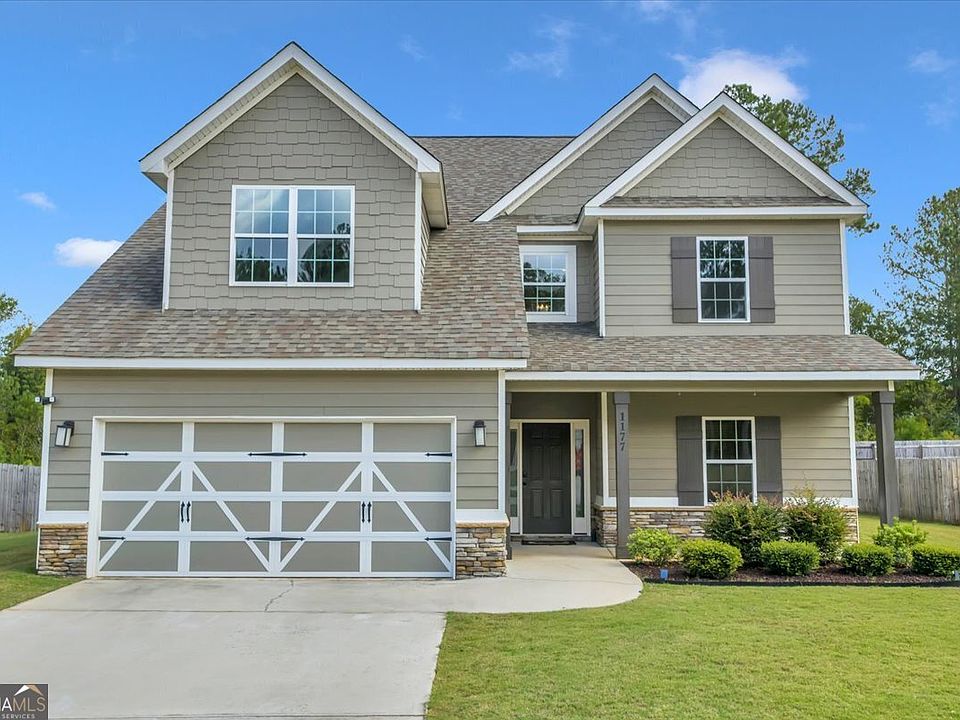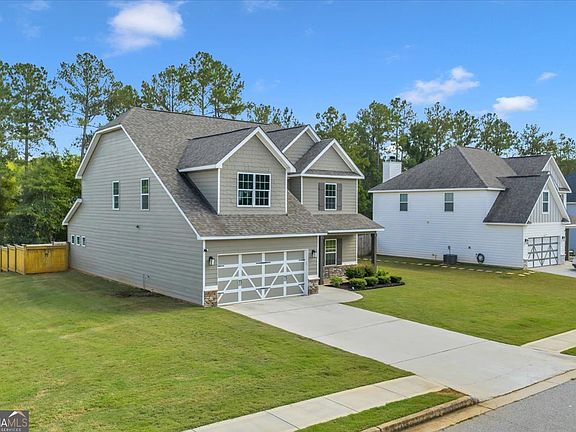 Showings available every day, or join us for open house this Sunday from 2-4 PM! Move-in ready and available for a quick closing, this 4-bedroom, 3.5-bath home in Juliette Crossing delivers space, style, and convenience without the wait or expense of building new. Built in 2020 and well maintained, it features a desirable main-level primary suite - an advantage for everyday comfort and long-term resale. The open kitchen with granite counters and designer lighting opens directly to the living room with a cozy fireplace, while the main floor showcases upgraded sculpted wood plank flooring that offers a richer, more durable feel than standard laminate or vinyl. Upstairs, an expansive bonus loft provides flexible living space for a media room, playroom, or home office. Outside, curb appeal shines with lush green grass, tidy landscaping, covered patio, and a fenced backyard ready for privacy and pets. With all appliances included, a two-car garage, and quick access to I-75, shopping, and dining, this home is clean, well cared for, and ready for its next owner.