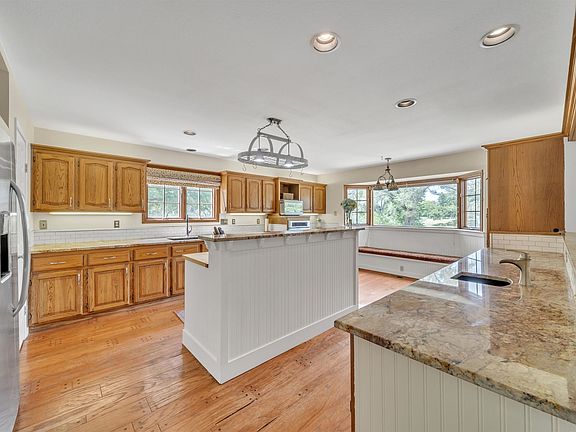 Welcome to this spectacular Riverside home, where incredible views of the Arkansas River await you! Built in 1994, this home offers a rare opportunity to own a property right in the heart of Riverside. As you step through the front door, you'll be greeted by a large foyer that opens to both the living room and dining room. The living room is a perfect spot to relax or entertain, featuring a vaulted wood beamed ceiling, a woodburning fireplace with gas logs and a massive wood face, as well as a quad of boxed-out windows and a 4-panel French door entry to the sunroom. The sunroom provides a tranquil escape, surrounded by windows and a vaulted ceiling with skylights, making it an ideal place to unwind with a book or enjoy the private backyard setting. Prepare and host gourmet meals in the huge island kitchen, equipped with an abundance of solid wood cabinetry, Granite countertops, a 2nd prep sink, roller trays in base cabinets, a 5-burner gas cooktop with a pot rack above, a large walk-in pantry, a glass cabinet with a wine rack, and a bay window with a seat below. The main floor also includes a convenient guest bath tucked down the foyer between the living and dining rooms. The master suite on the main floor offers a quiet retreat with boxed-out triple windows with a seat below, his and her walk-in closets with auto lights, and an ensuite bath featuring a large walk-in tile shower and a tile top double vanity. Upstairs, you'll find three large bedrooms with dormer ceilings and walk-in closets. The upstairs bath boasts a soaker tub, a walk-in tile shower, and a large tile top vanity. There's also a spacious walk-in closet off the upstairs hallway plus an attic fan for days you do not want to run the A/C. The full basement offers ample space for recreation, featuring a large family room with an oversized daylight window and built-in bookcases. Additionally, the basement includes a large unfinished office and a separate storage room with abundant built-in shelving. The heated garage is a versatile area that can be used for various purposes, including setting up tables for parties, it even has cabinetry and built-in range for extra food prep. The garage is complete with three windows, double doors leading to the backyard, a new Wifi opener with a camera, a 220 outlet, and a pull-down ladder to the attic. The quaint backyard is adorned with tiered planting beds and Gazebo for a hot tub. It's even been used for a Bob Villa video shoot, showcasing its charm and potential. Don't miss the chance to experience Riverside living at its finest!