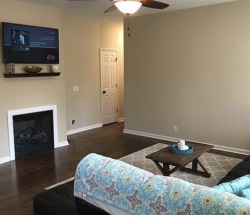 Sand & finish hardwood floors. Tiled baths. Interior freshly painted. 9 ft ceilings. Fireplace. Kitchen features granite counter & stainless steel appliances - refrigerator, dishwasher, microwave, stove/oven. Oil rubbed bronze fixtures. Double vanity in master. All bedrooms have ceiling fans and walk-in closets. Covered deck. Corner lot